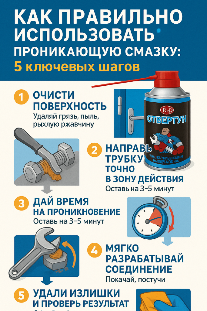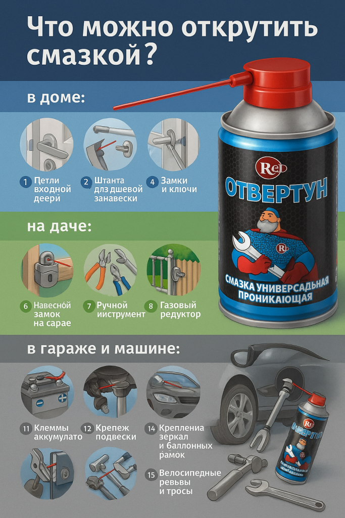 Сценарий до боли знакомый:Стоит забор. Надо заменить секцию, перекрутить доску или просто подтянуть конструкцию.А гайка… не сдвигается вообще.Пошевелил — бесполезно. Ключ слетает. Болт с рыжим налётом. Резьба как будто сварена. 🫣 Знакомо? Тогда держи проверенное решение от мастеров — с проникающей смазкой «Отвертун». 📋 Что нужно: 🛠 Пошаговая инструкция 1. Очисти участокПротри тряпкой или щёткой […]